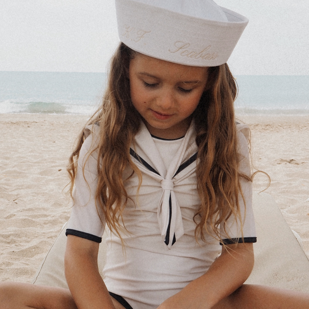 Mädchen UV-Badeanzug Sailor Nice - weiß dunkelblau