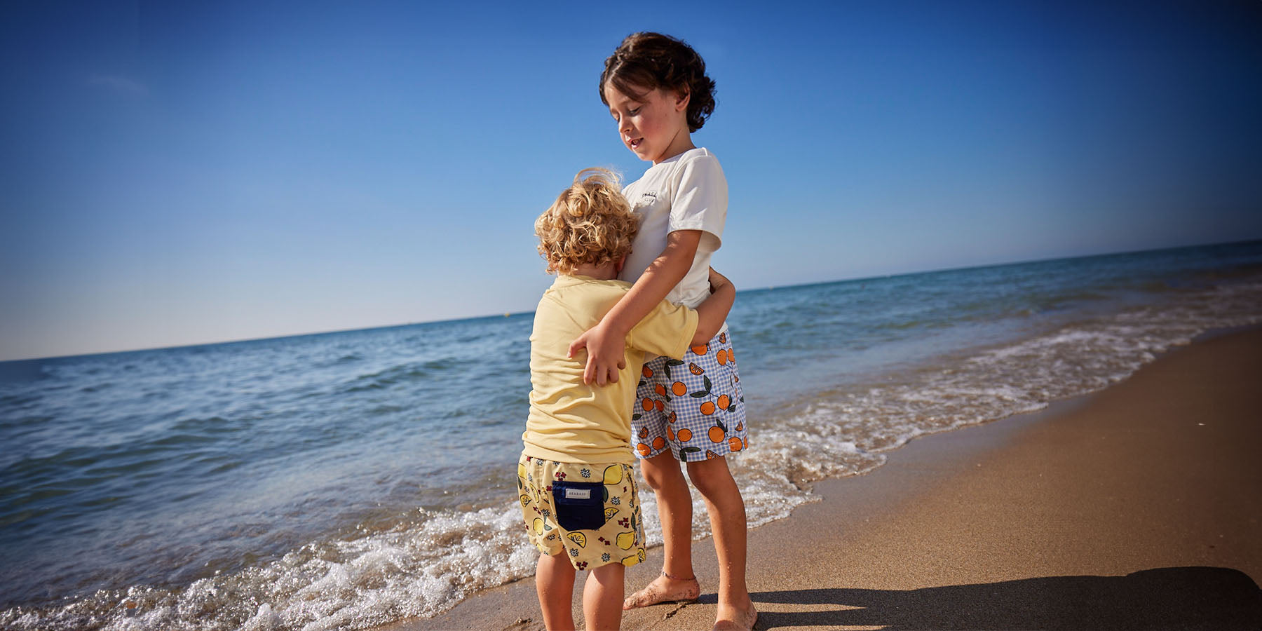 Our swim shorts feature a back flap pocket with velcro, a functional design: whether it’s for ice cream money or a seashell collection, it keeps their essentials close ;)