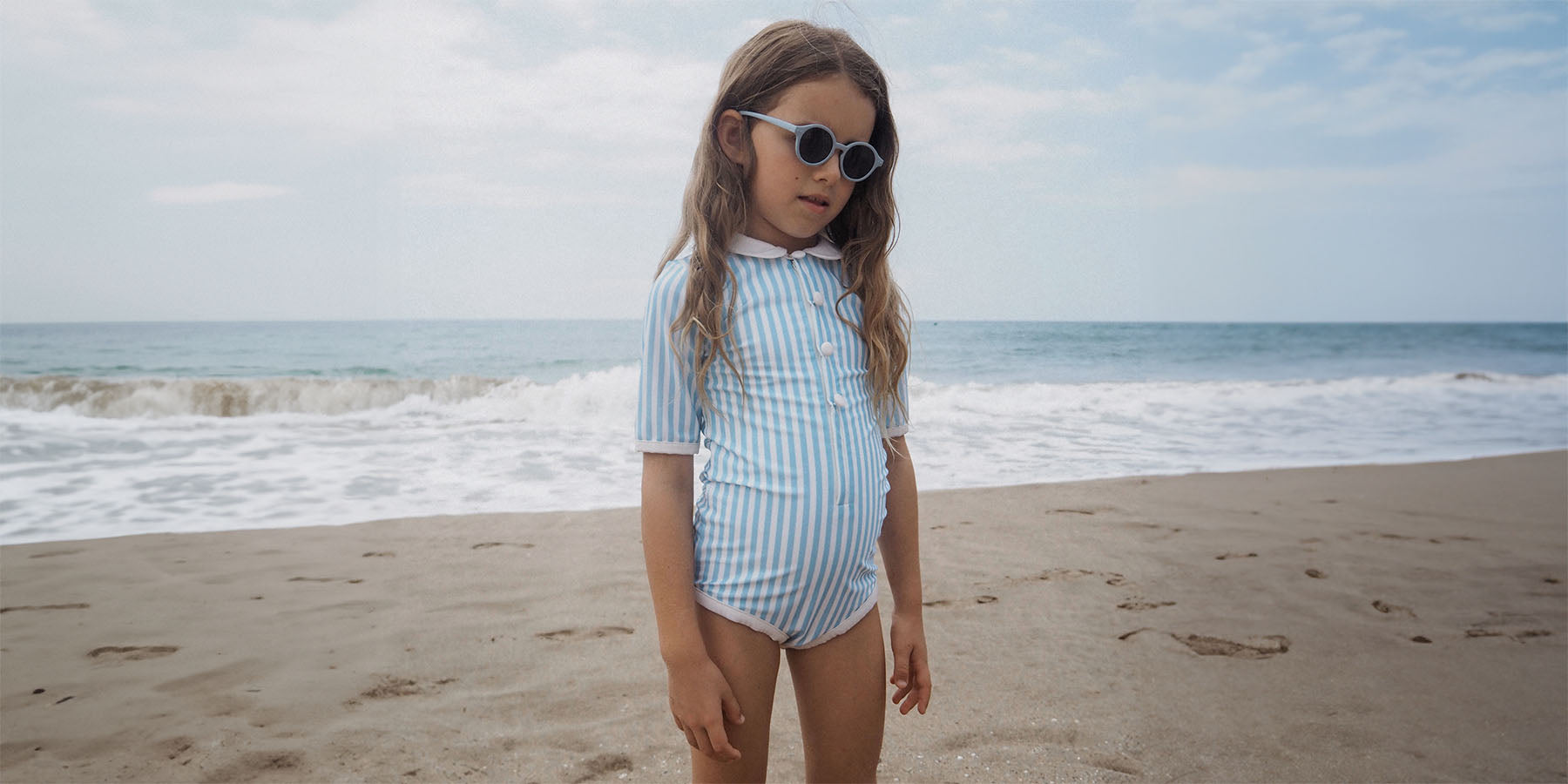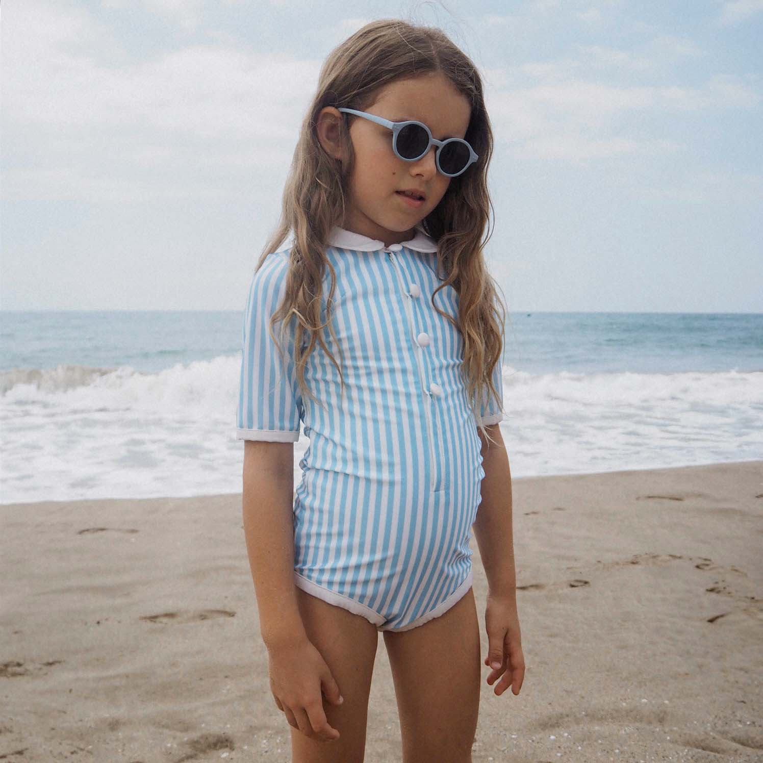 As classic as the striped beach houses among the elegant Forte dei Marmi. This baby blue stripe for girls can be matched with the UV swim short - forte dei marmi for boys. Musthaves for the summer wardrobe.