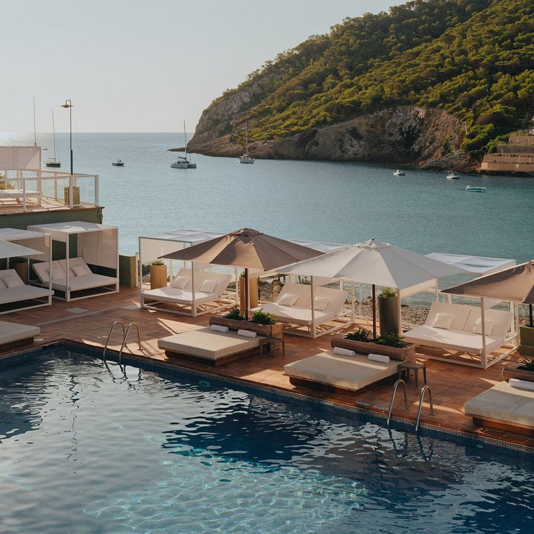 Overlooking the turquoise waters of Cala Llonga, Hotel Mondrian combines chic sophistication, inventive design, and extraordinary experiences in Ibiza, the Mediterranean's most lively destination. With direct beach access and three luxurious oceanfront pools, it will be the place to be this summer.