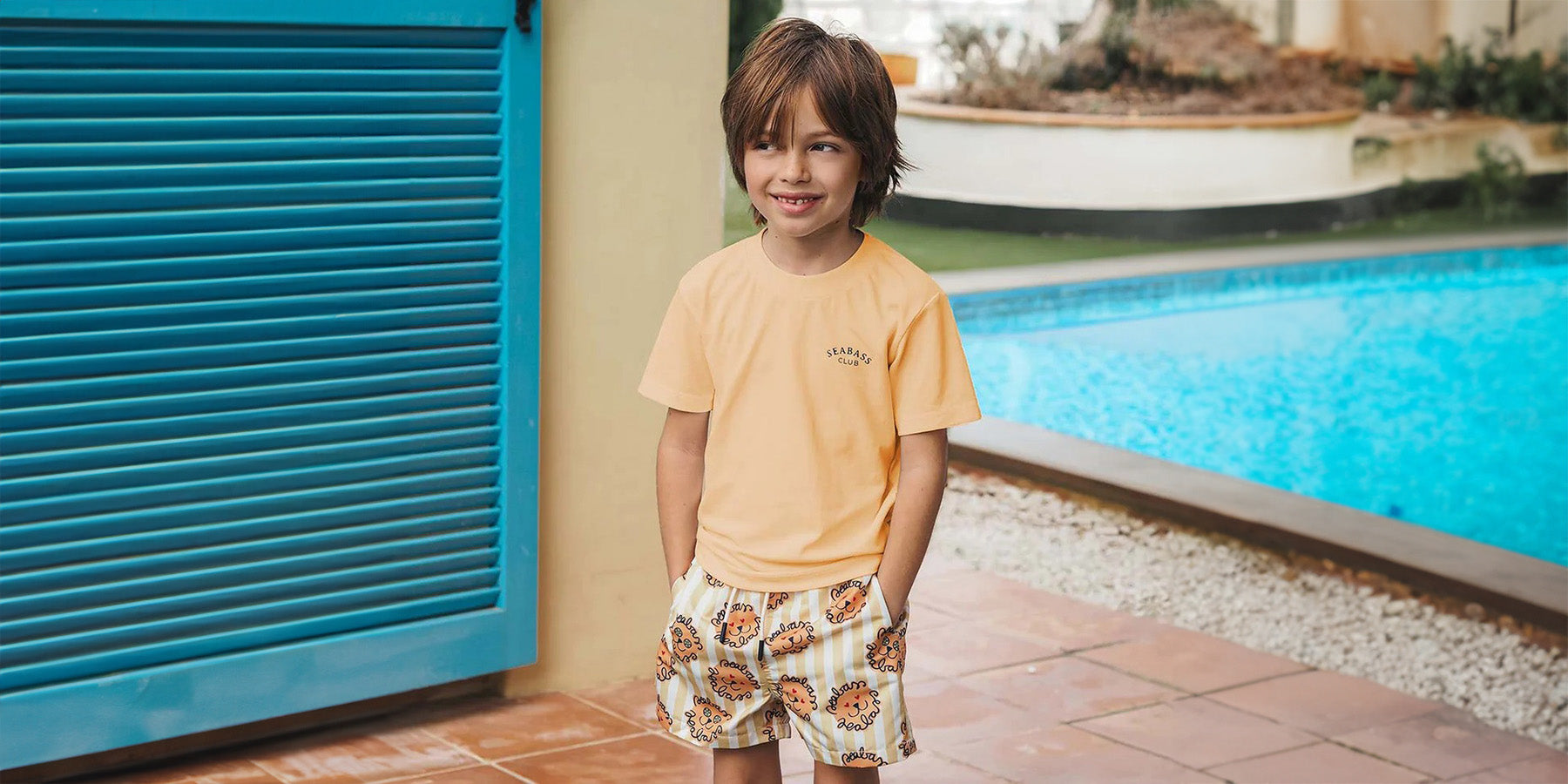 Jungs UV Badeshort Leone - Löwe Gelbe Streifen